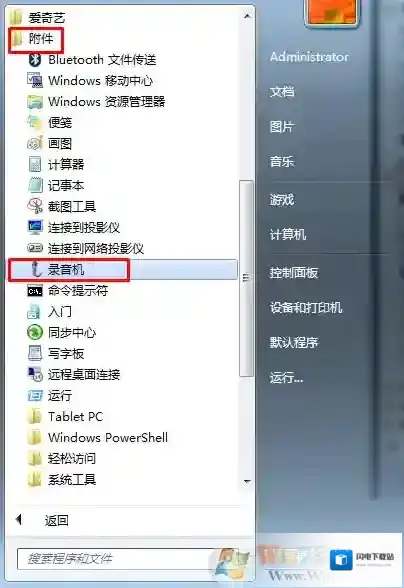 2、打开录音机后是这样子的,如果系统提示“没有录音”设备,那么说明你麦克风没有插上或者无法检测到麦克风;