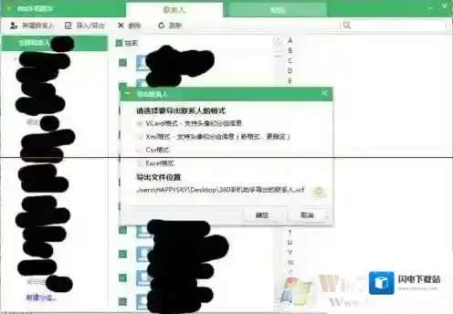 5、选中需要备份的联系人,点击导出,在导出格式中选择Excel;