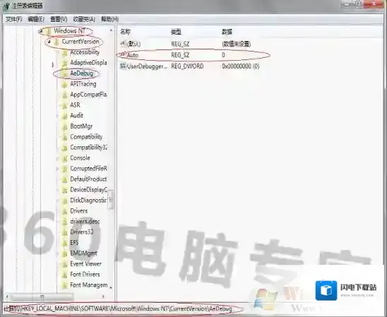 NT/CurrentVersion/AeDebug]如下图依次进入界面: