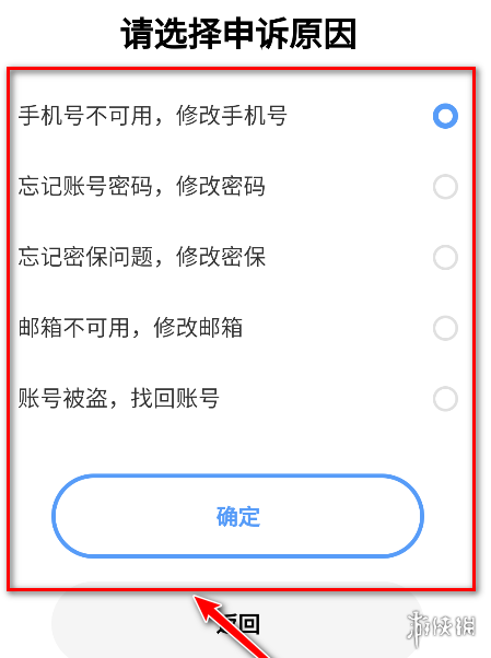 10、选择申诉原因,点击确定即可。