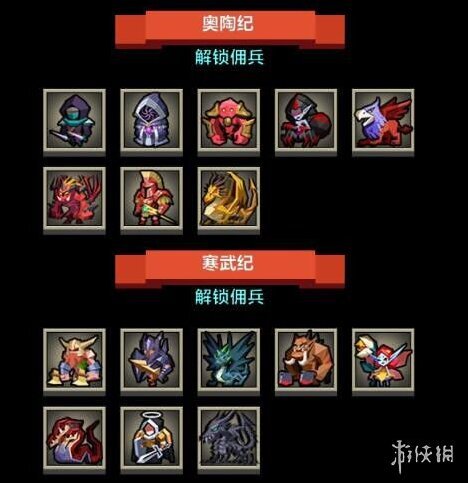 在酒馆中可招募佣兵,每次固定消耗60钻石,但只限于冒险模式通关后才可招募对应佣兵。详细列表请见下图。