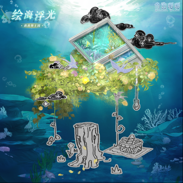 绘海浮光含正常姿势与特殊姿势,全新妆容“绘海寻梦”,油彩纹身“一闪灵光”,精美可移动摆件“蔚海晴窗”、“乌墨阴云”、“未竟之作”、“涉想犹存”。