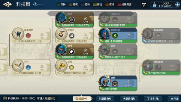 而随着游戏的进行,玩家会步入跨时代发展的潮流中,历史的车轮向玩家滚滚而来,玩家要做的,就是去推动他,并且制定它的行进方向,随着每一次时代的升级,玩家都会解锁对应时代的全新科技,这种推进时代,创造历史的玩法,伴随着科技树这一独有机制,让游戏在讲究策略的SLG中拥有无限可发掘潜力,你可以专攻某一个领域,实现该领域的功能最大化;你也可以雨露均沾,感受该时代下每一个科技对城邦的影响,这样的自由选择权和搭配丰富度让每一个玩家都独一无二,相比起一成不变的三国SLG,还是多变的时代更让人心驰神往。