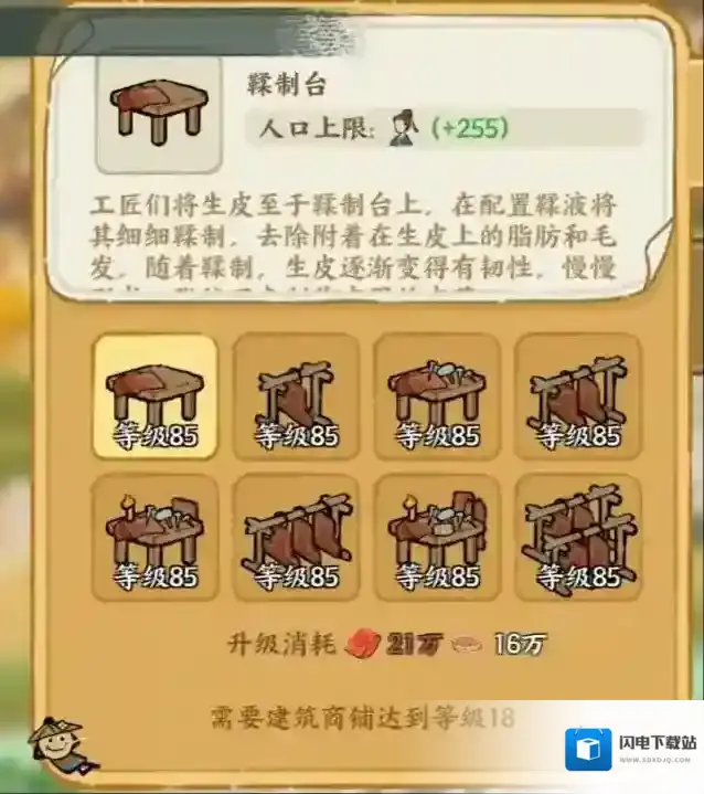 注意生产类建筑每升1级多20人口位,工艺升1级加3人口位。