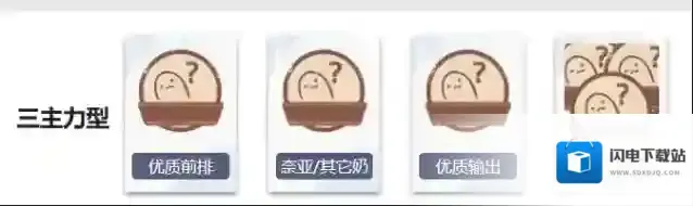 其次因为有4类基础配对,那么除了前面两个配队公式之外,还有一个三前排型,三前排就是前排放三个角色搭配一个奶妈,一个保护辅助,一个输出,这类阵容的话,一般就是靠肉来走后期,比较适合打一些boss类型的关卡,走副本比较合适,因为输出太少的话,前期可能走这类角色弱点会比较多,所以推荐大家后期可以尝试一下,三个前排里面放坦克的话,生存能力就比较强势。