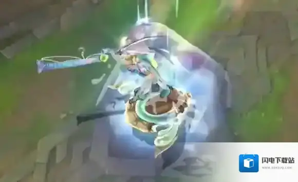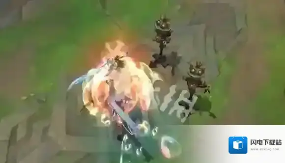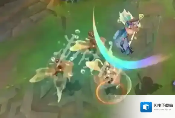 2、一技能:普通突刺时,剑身会缠绕气泡并发出橙绿色的炫彩光芒。积攒旋风后,亚索身边会有炫彩气泡涡流环绕,发出的旋风是橙绿渐变的气泡旋风。在三技能突进期间施放,会呈环形出剑,并有黄绿色水波随剑气飞舞消散。