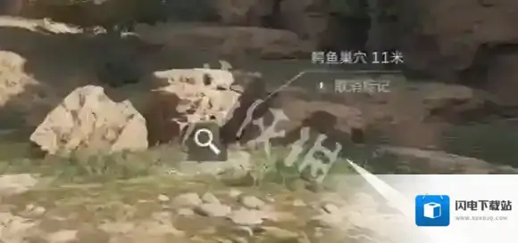 1、位置一:找到储藏站下方的大瀑布,就能看到前方中间平台处的鳄鱼巢穴。