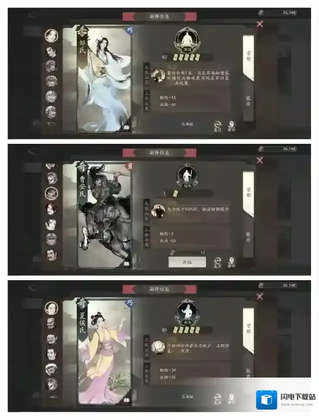 副将推荐:因为程昱的双法可以全程替换为法攻,所以法攻数值对程昱几乎完全没用。考虑这点的情况在前期可以选择曹安民,夏侯氏或者邹氏过渡。后期选择钟繇,蔡邕。