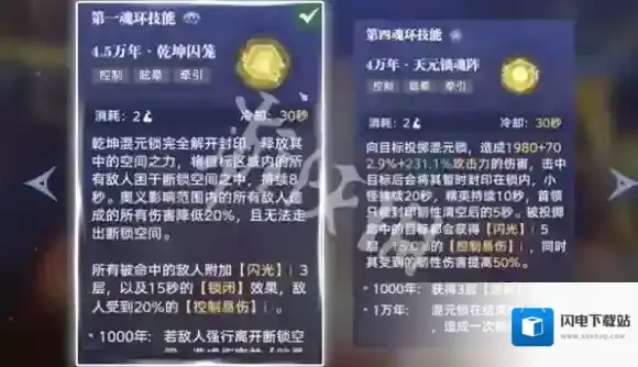 2、乾坤混元锁可以进行控制,锁的奥义是第一奥义,起到封闭的效果,正好弥补尘心输出分散的情况。