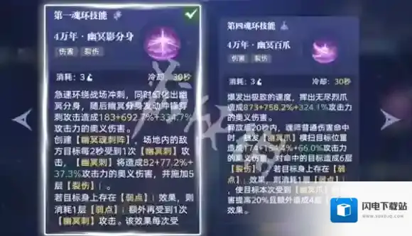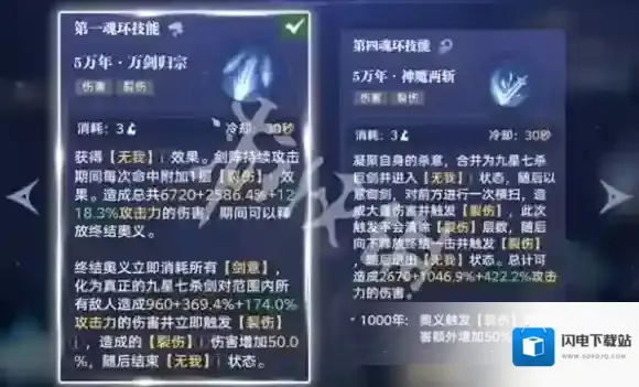 4、尘心和小猫选择第一魂技,可以给他叠裂伤,尘心魂技5万年时奥义持续攻击期间对目标造成的伤害受到目标身上裂伤,层数的加成,最大提高40%;小猫魂技可以叠加一个裂伤,施加五层裂伤。