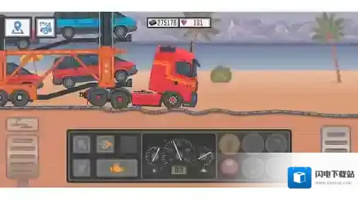 游戏中是以2D的形式进行驾驶,只需简单的控制档位,并点击刹车和油门控制速度即可,更加方便玩家完美的执行好运输任务。同时,我们需要自己选择路线前往装货点,并操控机械手将货物安全的装入卡车当中,然后继续开启运输之旅。