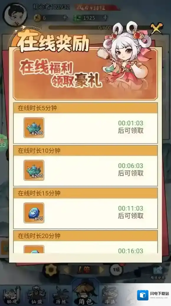 5、每天在线一定时常可领取在线奖励。