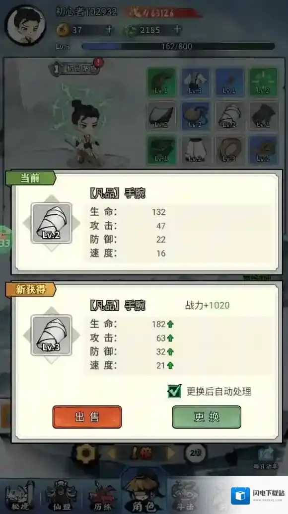 2、打造出来的装备好的直接换上,不好的直接出售。