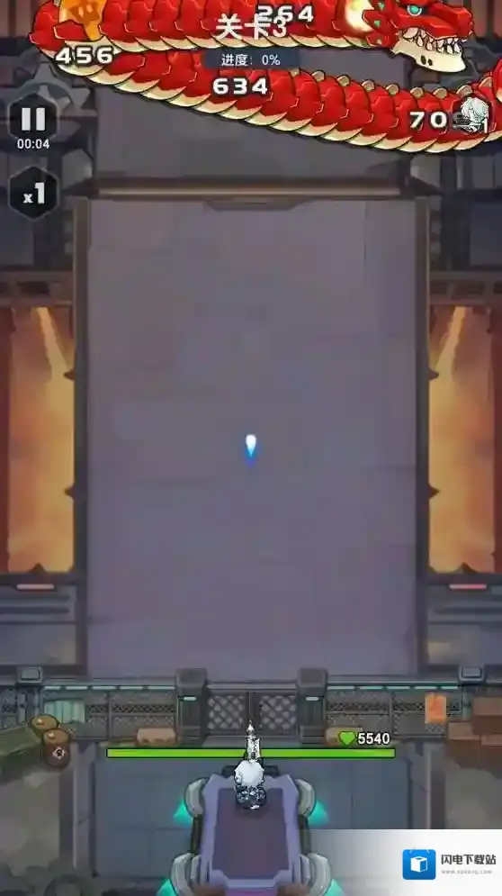 2、进入关卡后巨龙会慢慢向你靠近,角色会自动发射子弹,你可以移动角色来攻击巨龙。