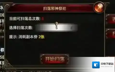 如图所示:副本界面有个扫荡按钮,选择需要完成的次数,点击之后,即可完成副本,领取经验和奖励,提示一瞎小伙伴们注意把背囊的物品清空一下,不然就无法完成扫荡。