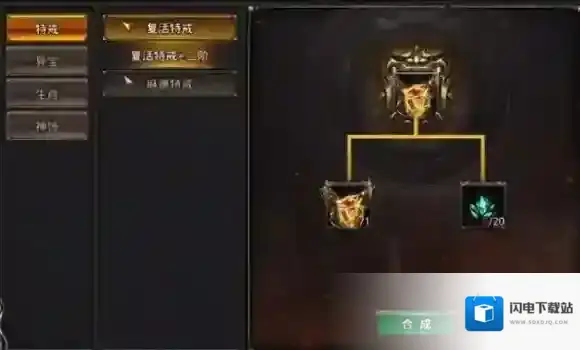 二、合成系统说明:合成系统可从游戏右下方合成入口进入。合成系统初始只有四部分,分别是特戒、异宝、生肖、神饰。