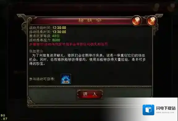 ③每日活动:每日中午12:30到1:30开始的猪洞活动,击杀猪王或猪皇可获得大量的猪肉,使用猪肉可获得大量经验奖励。