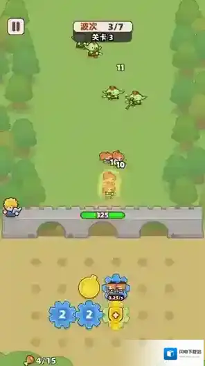 3、点击战斗后齿轮会转动来召唤小兵,小兵会自动消灭出现的怪物敌人。