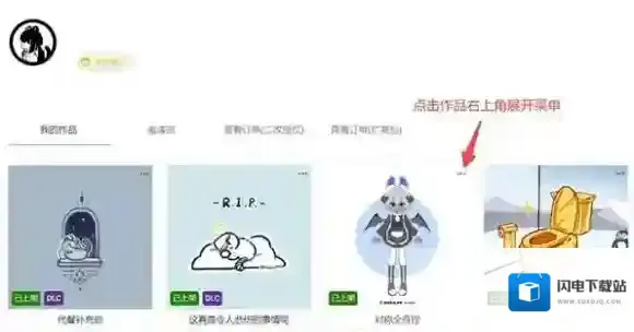 1、在捏咔工坊中,选择想要为其创建DLC的作品,然后点击作品右上角展开的菜单。