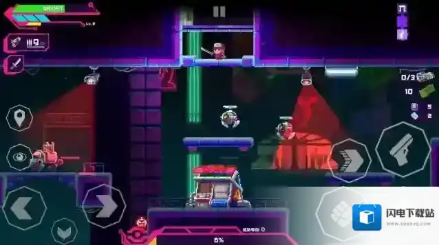2、正式开始后左边控制角色的移动和互动,右边是攻击、跳跃、冲刺和射击按键。