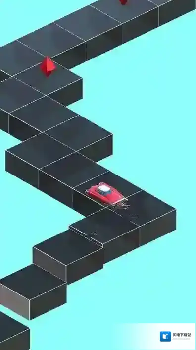 2、遇到交叉路口时提前判断双车行驶轨迹,利用“单车道切换”技巧让两车交替通过狭窄路段,遇到红色尖刺带时及时滑动屏幕让双车同时跳起躲避。
