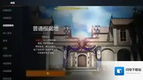 战盟等级达到3级后,战盟的君主以及守护者有资格购买战盟根据地!在战盟根据地中,成员回复生命以及魔力的速度更快。