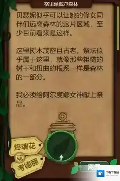1、如果你选择了驱魔仪式,前往N9举行驱魔仪式,在祭坛上放置以下植物:恶魔睡帽、疾网藤、寡妇哀、长羞草和古翠草。