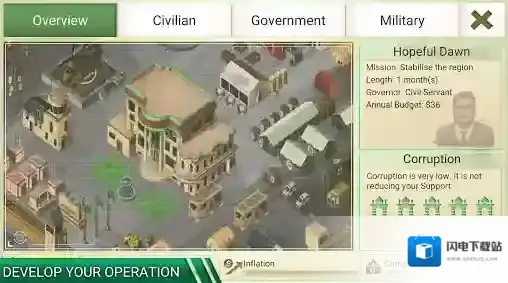 游戏中玩家们将会来到自己选择的区域当中,成为这里临时的治理者,通过建设民生、发展政府项目来发展该区域,获得人民们的支持,提高自己的声望;同时还要去训练军队,建设防御设施,消灭一切妄想占领该区域的反叛军,保持地区的稳定性。游戏的可玩性和策略性十足,体验起来非常的精彩!