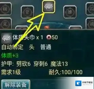 4、我们就可以在角色的属性栏里看到已经装好的道具,并获得了装备提供的属性,提升了英雄的实力。