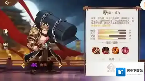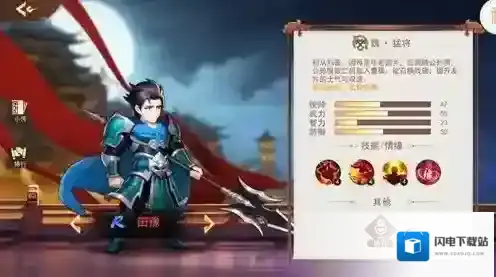 1、每个武将都有四个属性值,玩家可以根据角色数值来安排阵容和战场。