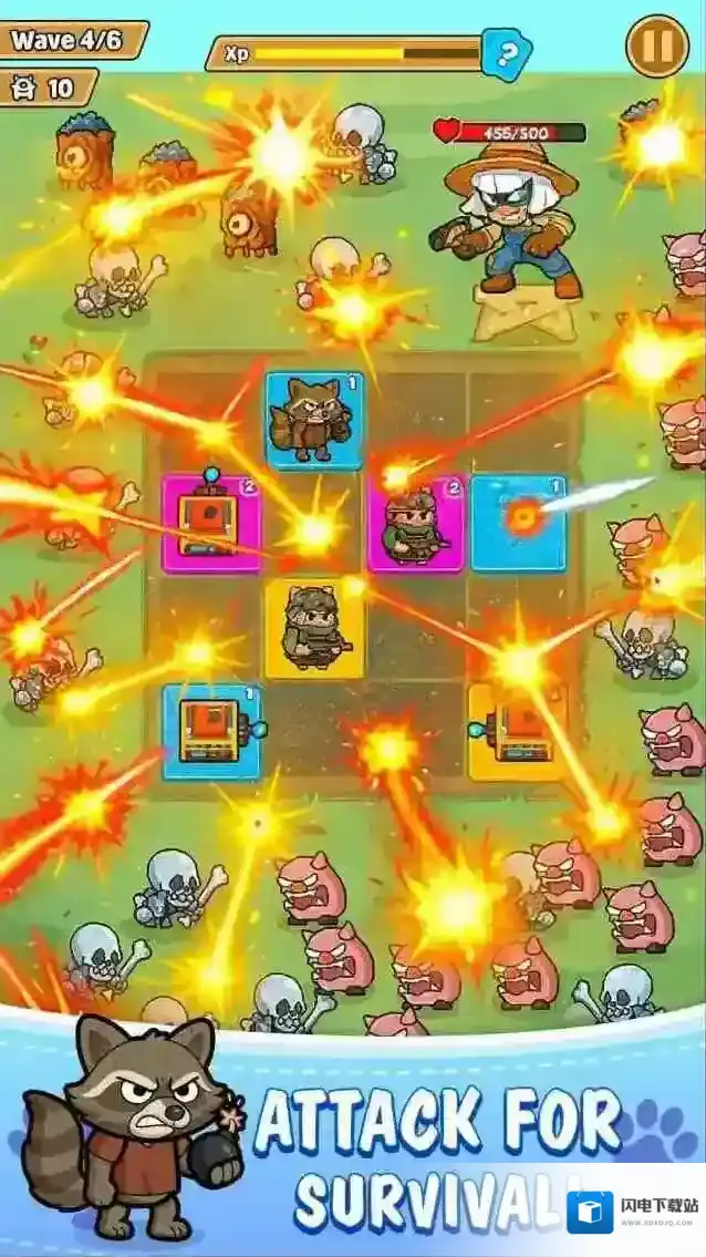 动物防卫战,一款肉鸽塔防游戏,玩家将召唤不同的动物来消灭出现的敌人。在动物防卫战中有很多的角色可以自由搭配,丰富的阵容可以随意去选择,不同的组合会给你带来新的体验,更多的搭配会让你体验到不一样的乐趣,不断消灭更多的敌人来守护你的基地吧。