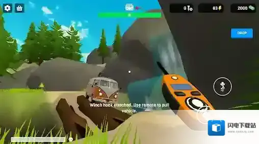 2、在房车头有着绳索,长按即可拉动,将其绑在树木上。