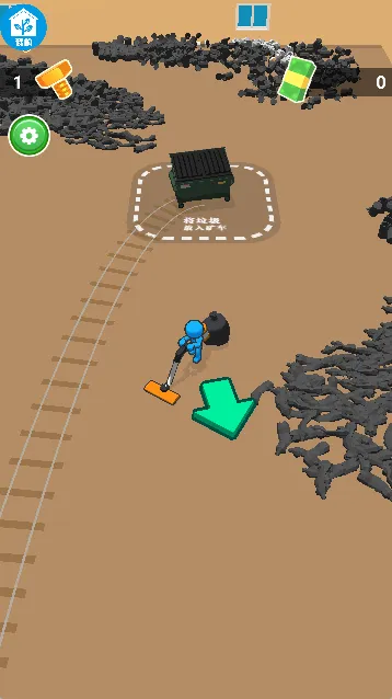 2、将垃圾放入矿车中,会自动出售,需要玩家去门口才能领取收益。