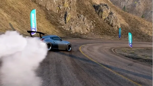 唯一需要注意的是在到达山顶之前的一百米左右,整个坡道上会有很多细碎的小石块,在我们的车辆碾压上去之后是非常容易打滑失控的。要知道在坡道上一旦打滑丧失了速度想要再把速度提升起来就很困难了,尤其是对于大部分后驱赛车,一旦速度降下来想要重新获得抓地力基本不可能。所以在车辆调校上尽量选择拉力轮胎以及四驱系统,比较推荐的赛车就是hoonigan品牌的rs200,可以直接去改装店搜调校代码“142755463”直接装备就行了。