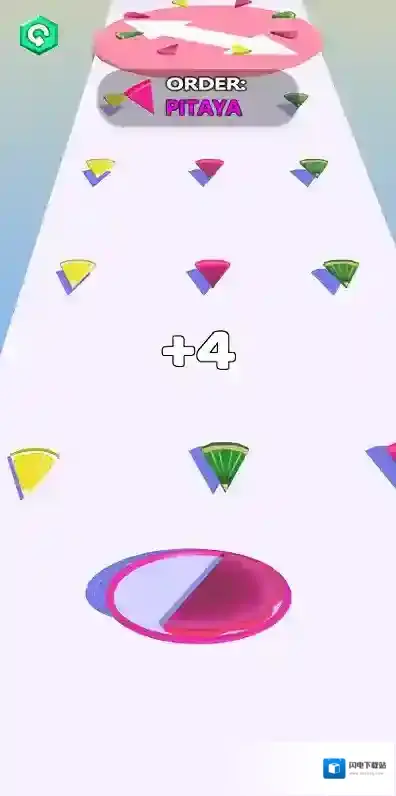 1、颜色匹配机制:核心玩法围绕“同色收集”设计,盘子颜色会随关卡随机变化,需快速识别并收集对应颜色水果,考验瞬时色彩判断能力。