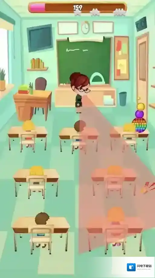 2、躲避系统:通过观察、预判与操作完成躲避,合理利用道具与环境优势躲避老师视线,连续完成高难度操作触发连击加成,获得额外金币与奖励,灵活应对不同类型的老师与场景。