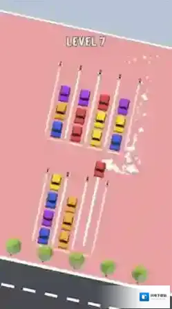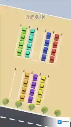 2、停车场颜色分拣任务:停车场停放着多种颜色的汽车,玩家需通过移动车辆完成颜色统一的停放目标,在混乱的停车场景中梳理秩序,感受分类整理的成就感。