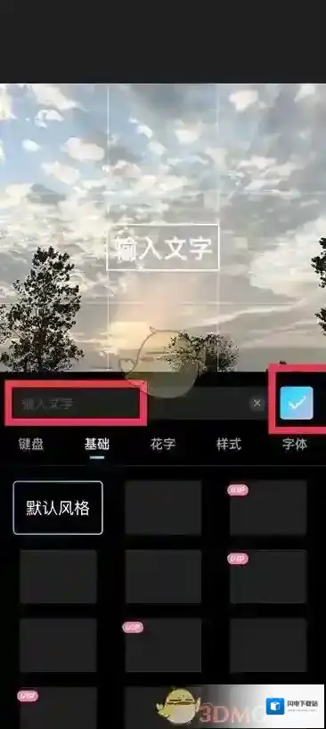 4、进入到此页面之中点击输入文字输入好之后点击对号图标即可。