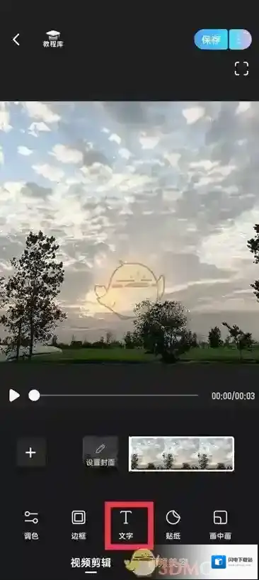 3、进入到修图的页面之后,在下面的功能区找到文字点击;