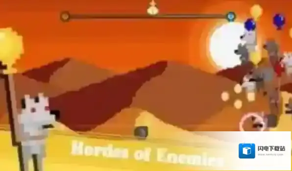 3、前行时,遇悬崖(箭头指的),提前跳跃跨越,避开掉落危险,还要躲狼、炸弹等威胁,推进关卡。