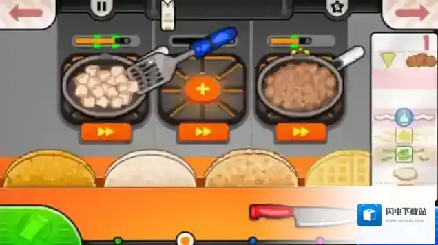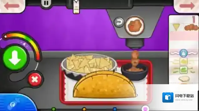 4、这一步完成之后,我们就会来到最后一步,首先需要选择正确的食物和酱,并点击左侧按钮停下,最佳的是停在绿色位置。