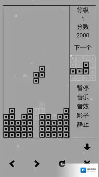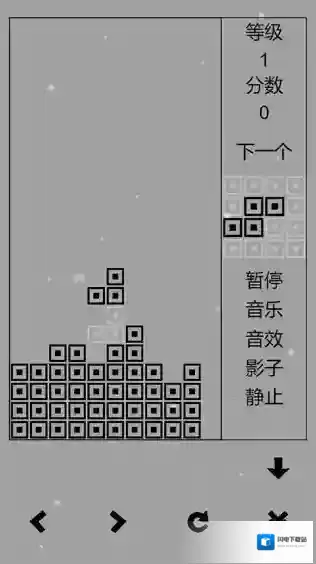 2、按键操控经典便捷:利用下方四方向按键实现方块左右移动、向下加速与旋转操作,延续老式街机的操控逻辑,让玩家快速适应并沉浸于经典玩法。
