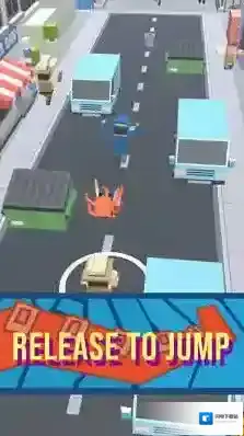 3、赛道适应挑战:在不同赛道中应对特殊机制,如在车流密集路段加快跳跃频率,在狭窄区域利用小人身高差调整路线。