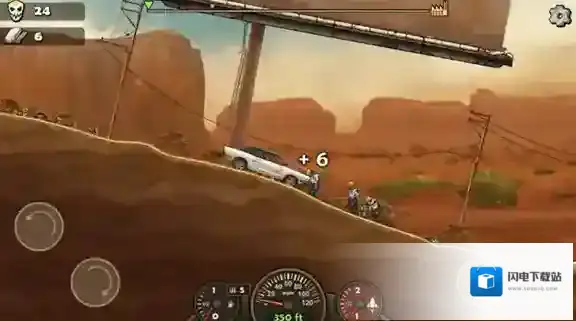 3、进入关卡后左边控制车辆的前翻和后翘,右边控制车辆的油门,点击可以加速前进。