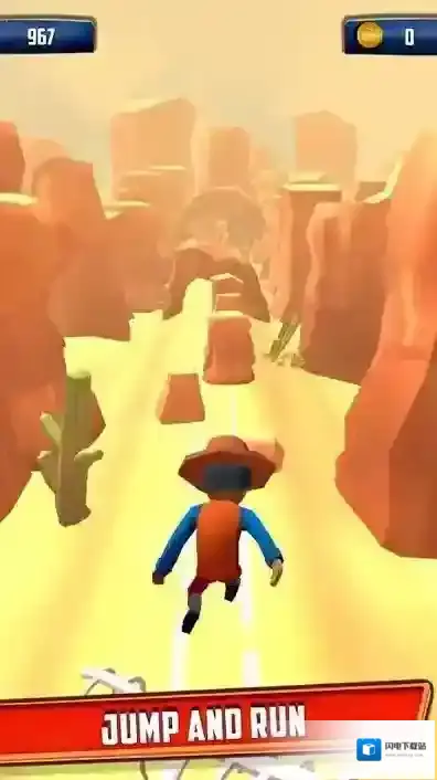 1、进入游戏后操控牛仔在西部荒野奔跑,滑动屏幕躲避前方仙人掌丛,点击屏幕跳跃跨过沟壑,首次奔跑先熟悉基础操作与场景障碍。