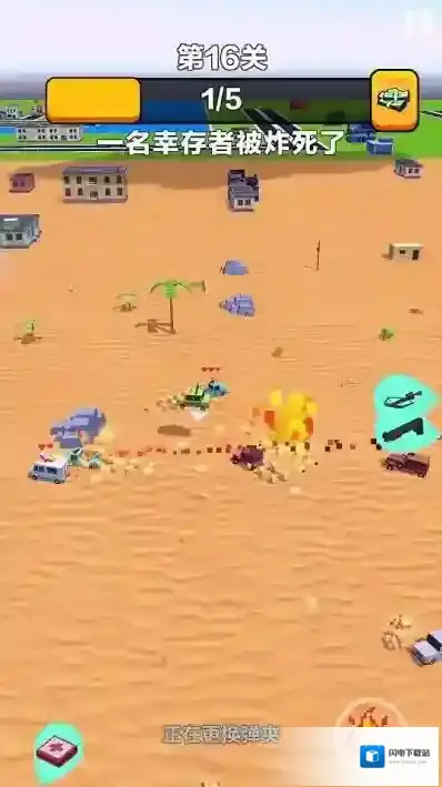 3、关卡推进第2关,操控汽车在道路战斗,消灭敌人如其他车辆,完成0/3目标,注意躲避爆炸,保护幸存者,推进关卡。