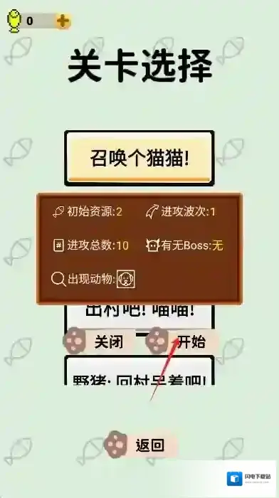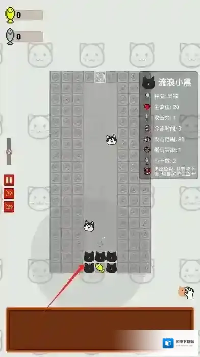 3、关卡策略:观察地图地形与狗狗进攻路线,优先在关键位置部署高性价比猫咪,合理分配资源升级主力猫咪,确保防线稳固。