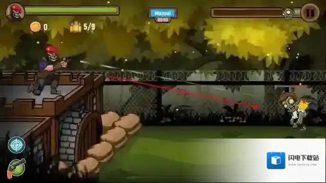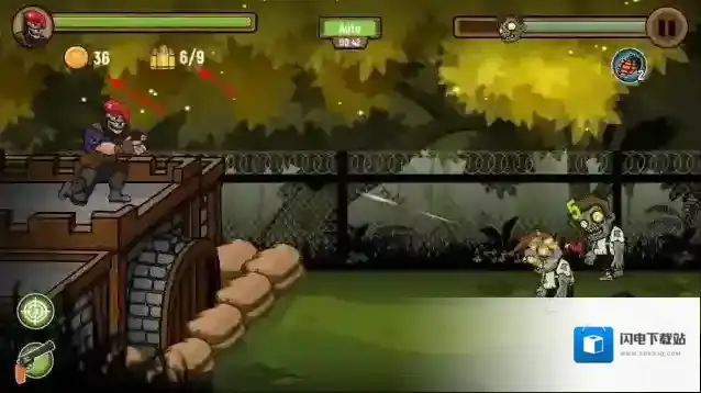 3、“防御阵地”,利用武器(手枪、炸弹),阻止多波僵尸靠近堡垒,守护生存区域。