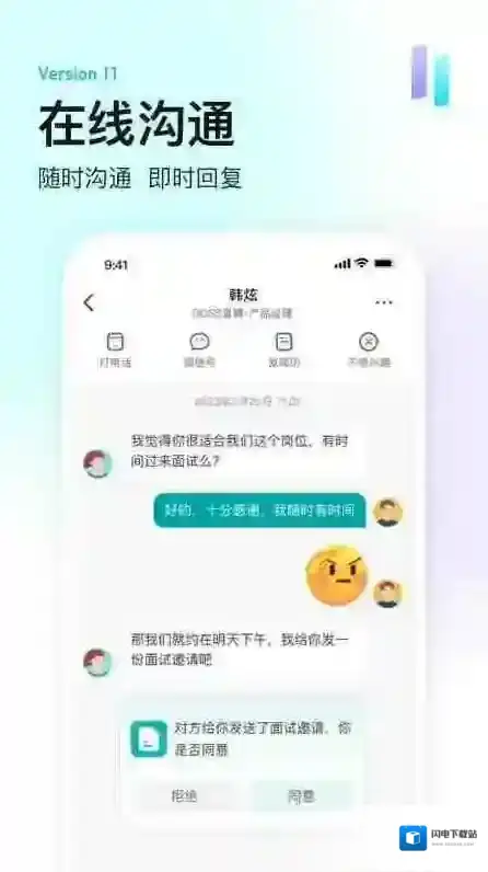 2、支持与招聘公司的老板实时聊天,直接在软件上咨询岗位的信息,约好面试的时间等等。