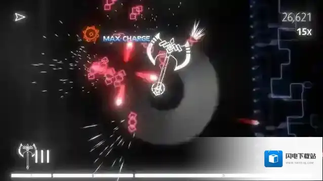 1、街机与科技融合的视觉风格:将经典街机的复古弹幕元素与现代科技感的粒子特效结合,小箭头移动时带有的流光效果与爆裂时的炫目光晕形成强烈视觉冲击。